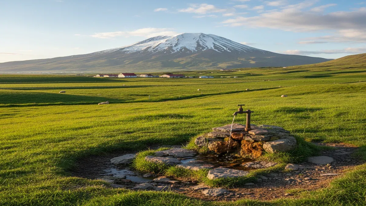 A naturally carbonated mineral spring on the southern coast of the Snaefellsnes Peninsula, where iron-rich sparkling water bubbles up from the ground and visitors can drink directly from a tap for free.