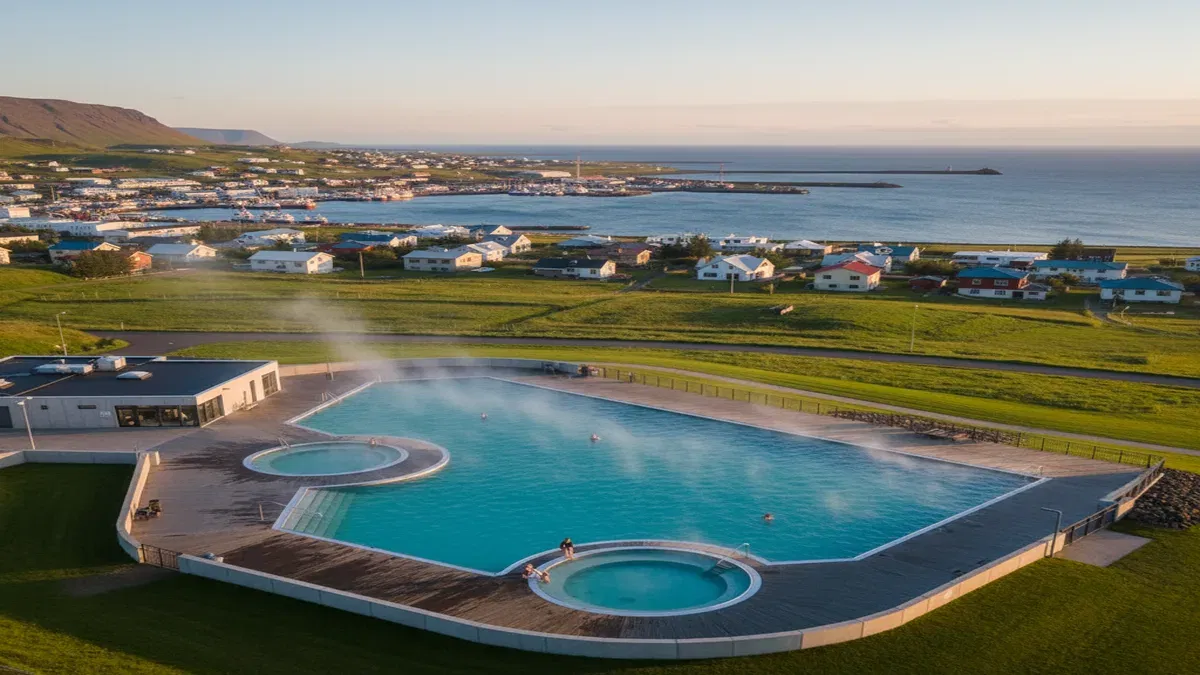 A geothermally heated municipal swimming pool in the heart of Husavik, North Iceland. With hot tubs, water slides, and a warm outdoor pool, Sundlaug Husavikur offers an authentic Icelandic bathing experience and the perfect way to unwind after a whale watching tour on Skjalfandi Bay.